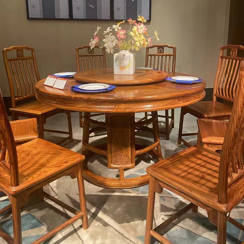 میز ناهار خوری گرد به سبک کلاسیک چینی از چوب جوجه تیغی ساخته شده است، با بافت و بافت عالی مانند یک طومار طبیعی. هر خط داستان سال ها را بیان می کند. صنایع دستی نفیس چوب را به صورت دایره ای کامل حک می کند که نمادی از اتحاد مجدد و شادی است. این با دقت توسط کارخانه سرخ چوب تیان جیانگ با کیفیت عالی تولید می شود.